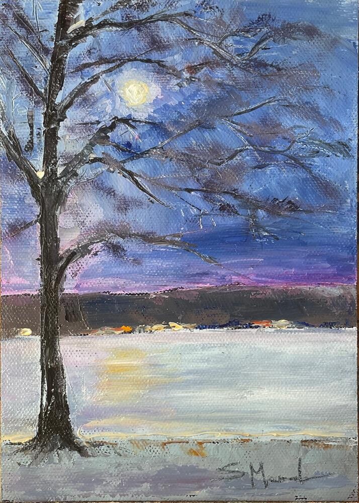 From my window I hear the ice plates groaning as they move on the lake. It almost as if the lake is saying "I'm tired of winter" Day or night I can't paint my view enough! This is Hubbard Lake, MI located about 20 miles from Alpena, MI in the northeastern part of the state. From my window I hear the ice plates groaning as they move on the lake. It almost as if the lake is saying "I'm tired of winter" Day or night I can't paint my view enough! This is Hubbard Lake, MI located about 20 miles from Alpena, MI in the northeastern part of the state. |