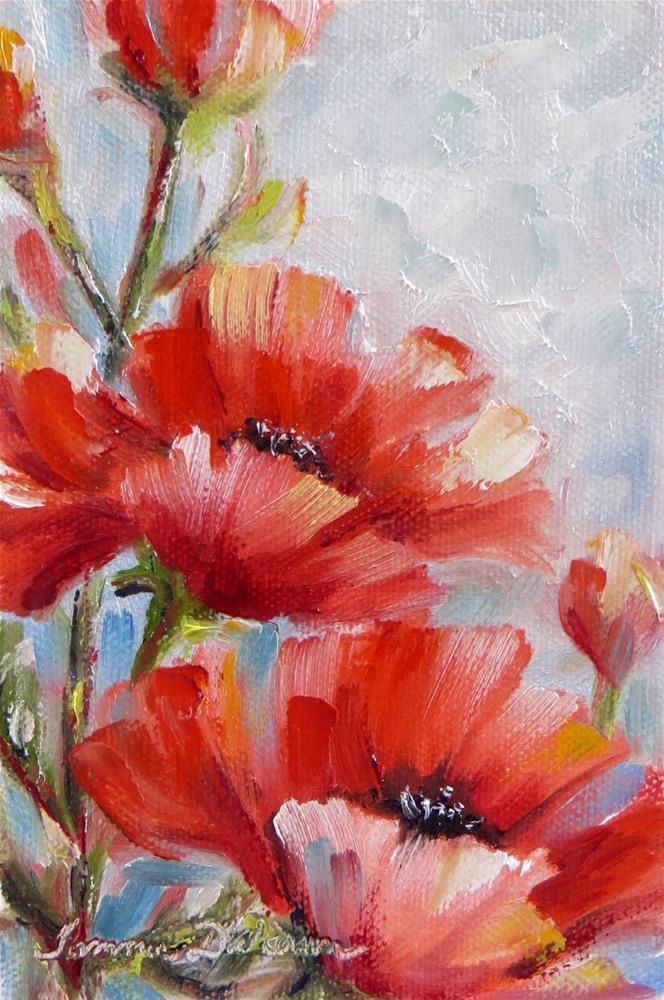 What is more eye catching than vibrant red poppies? Their papery petals are glorious as they catch the sun - and I am catching them with my oils and palette knife today!