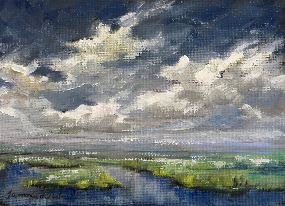 On this painting, I am experimenting with new color on the moody skies overhead!