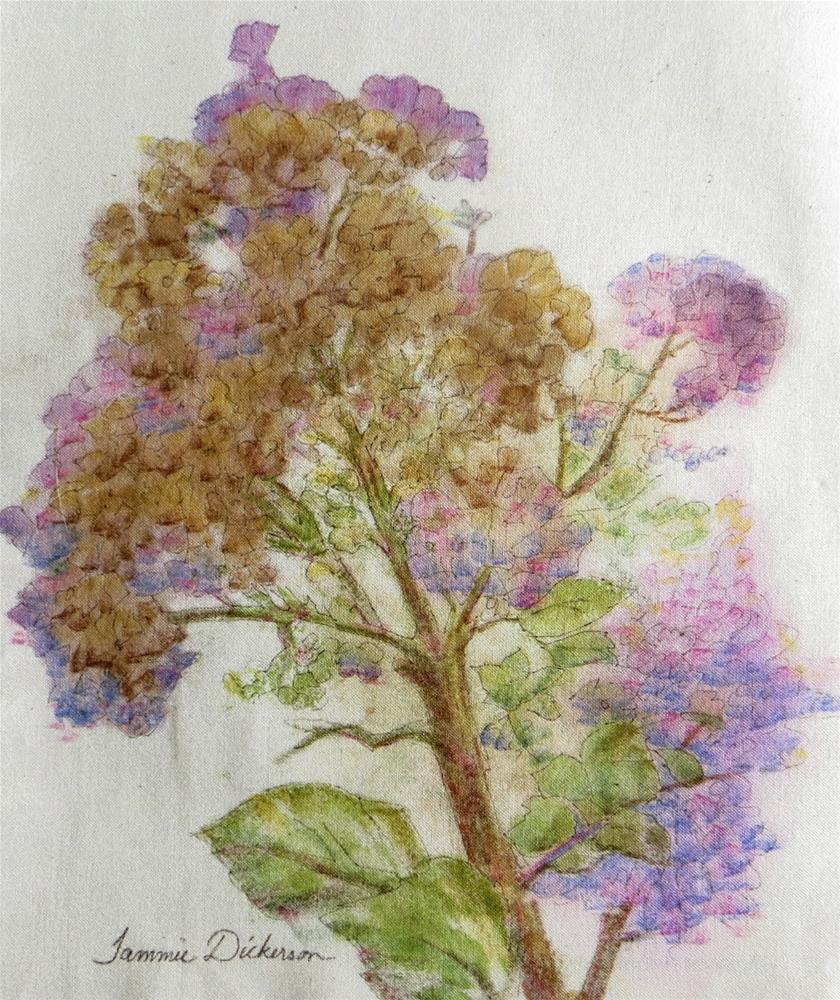 Media: real flowers pounded into the cotton before defining with pen and ink