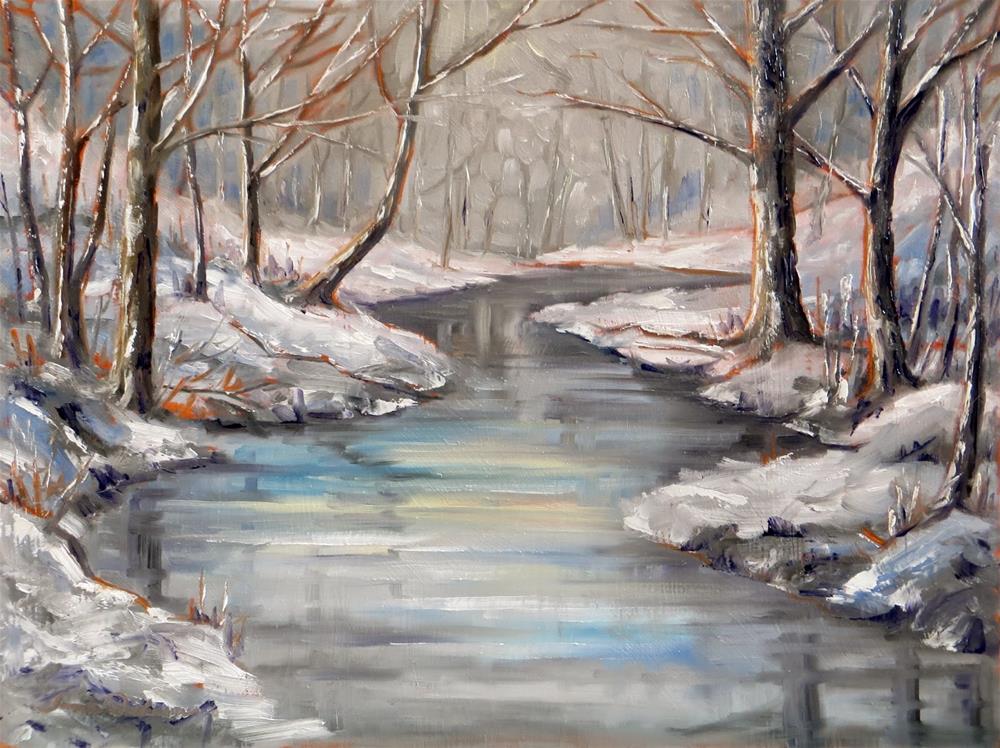 Finally! We have a blanket of snow turning the landscape into a winter wonderland! Capturing a local creek today with brush and palette knife.