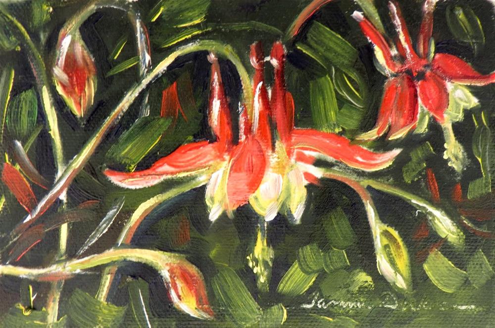 The columbines always remind me of fairy tales and mystic dreams - so fanciful are their blooms! A joy to paint, they take me back to childhood :)