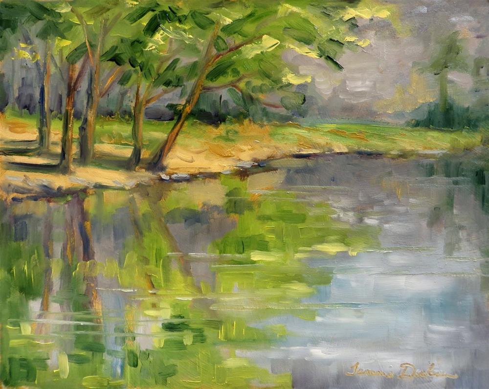 The tranquil waters of this pond are calming to capture with oils on wood panel this drizzly day.