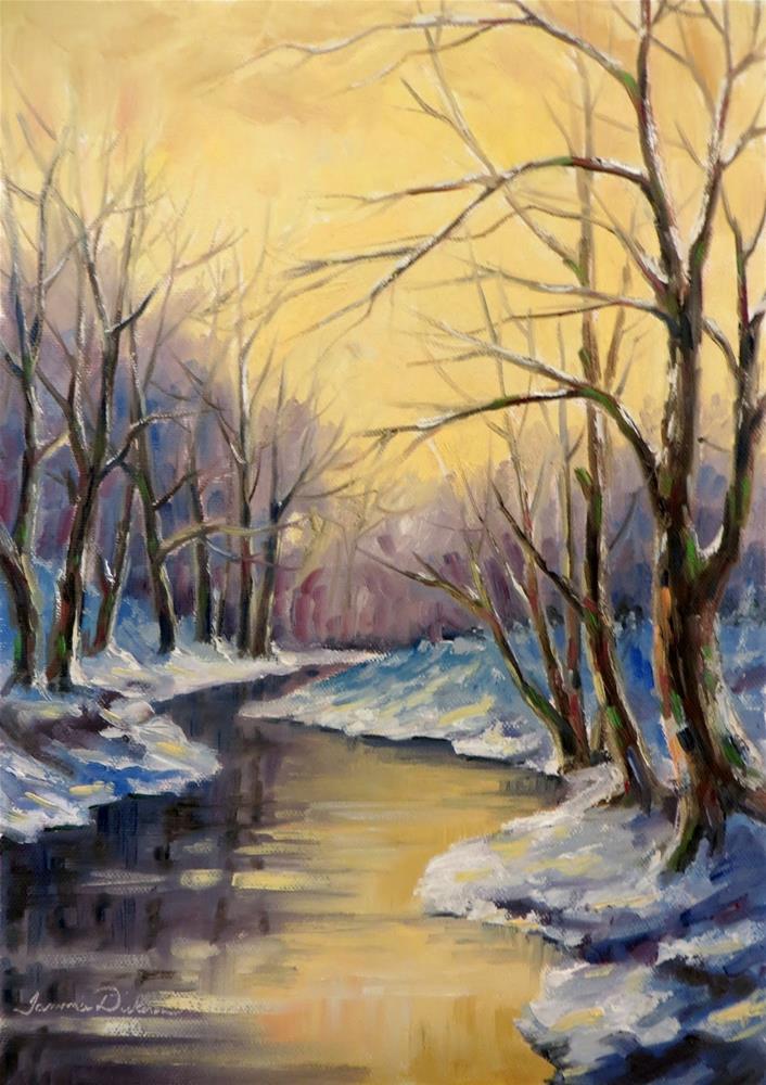 What is more inviting than a warm winter landscape? This one is painted on canvas in oils.