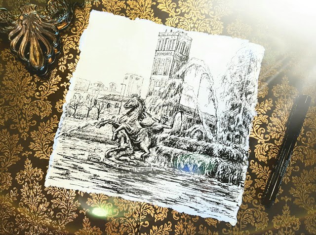 JC Nichols Fountain in Ink