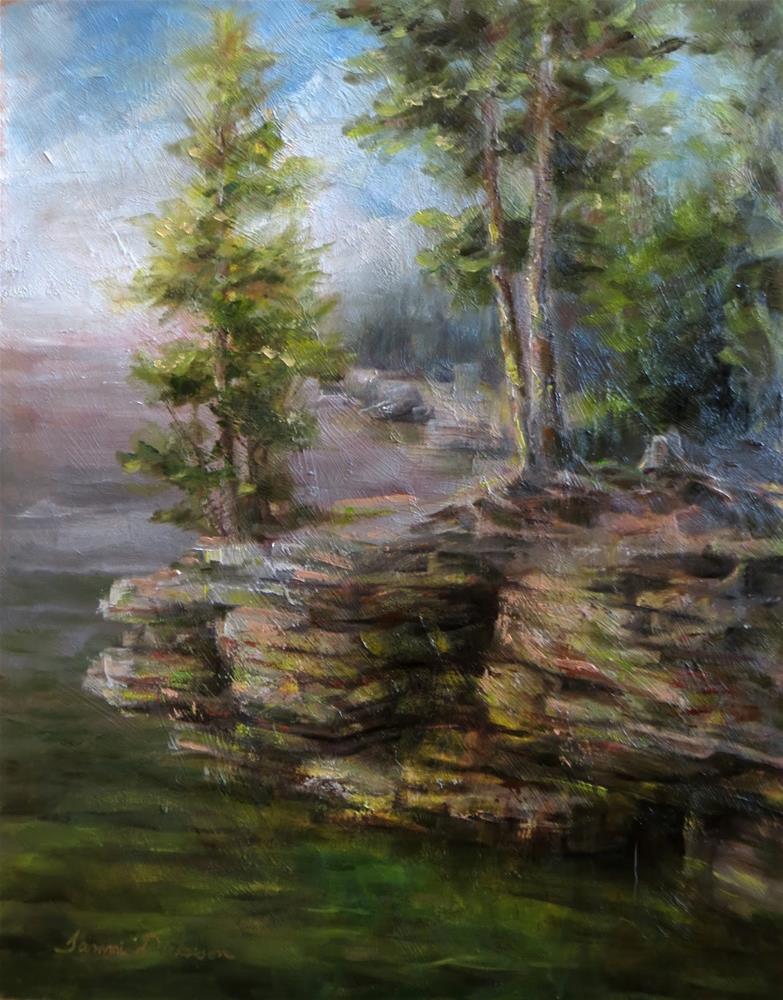 Painting from the cliffs of Cave Point, this rocky terrain high above Lake