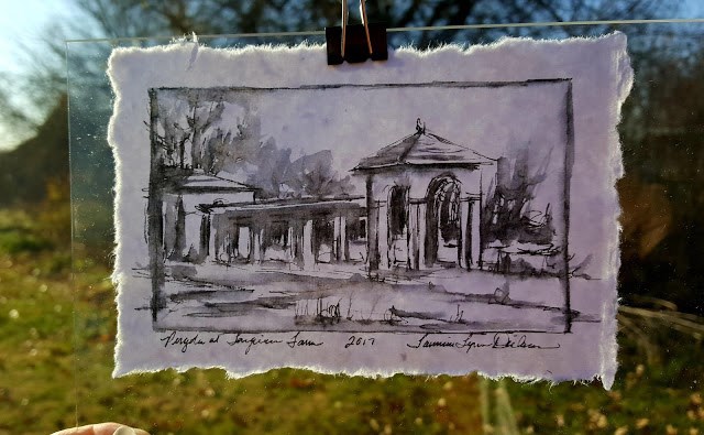 Pergola at Longview Farm in ink