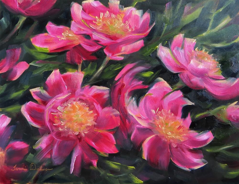 The bright pink petals of these peonies caught my attention immediately! I had to set my easel right up to paint them en plein air at the arboretum today!