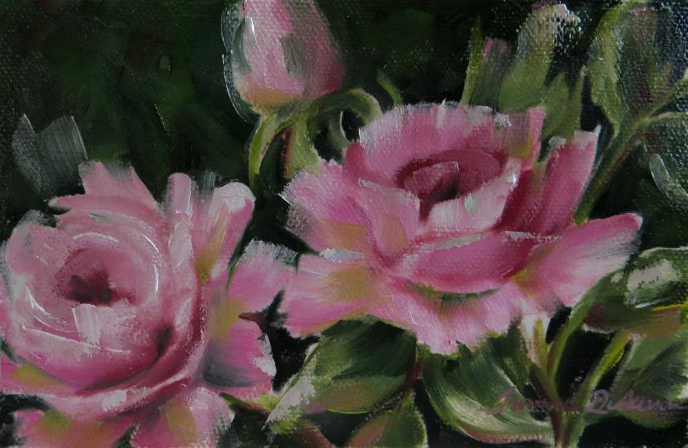 Soft, elegant pink roses shine in the landscape, and simply beg me to paint them!