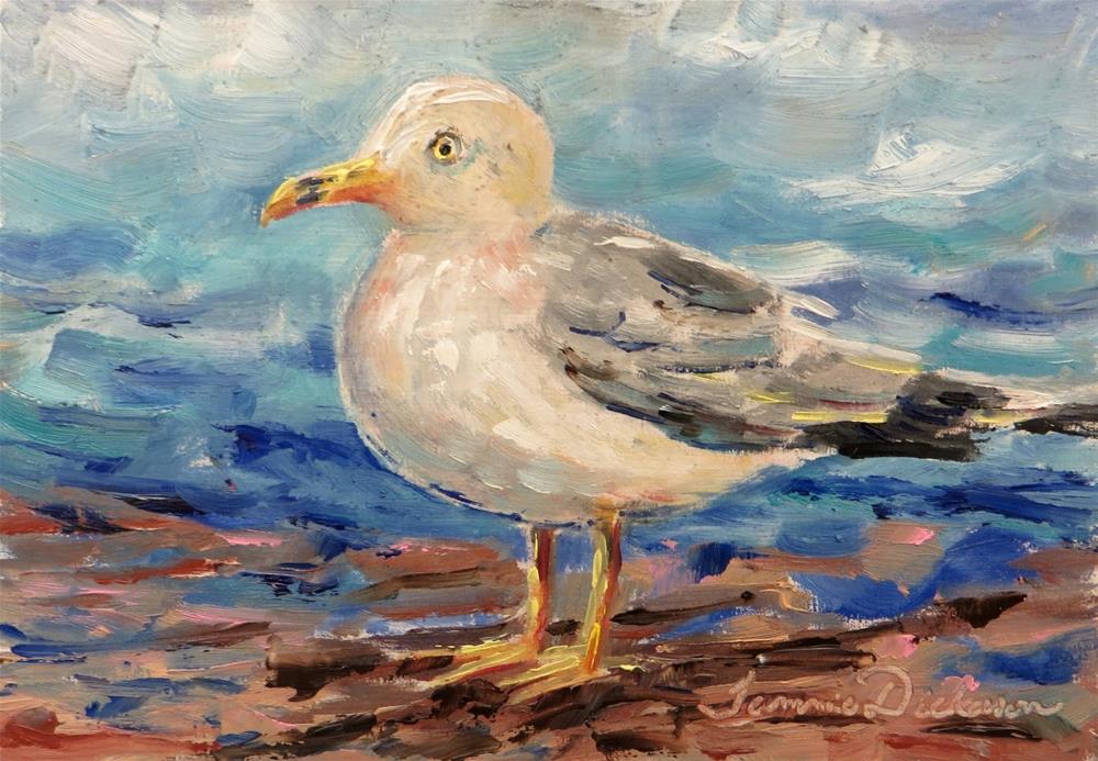 Today, I am painting the colors of sand and surf, as Mr. Gull walks along the beach.
