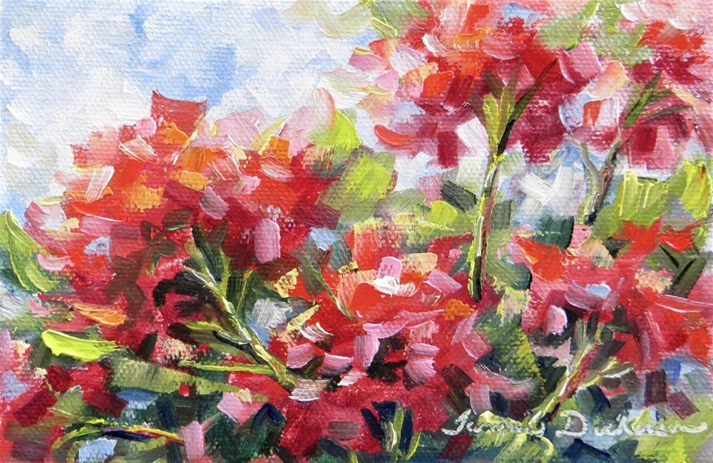 What is more lovely than the expressive petals of the geranium as it shines in the landscape? Using palette knife and brush to capture it's beauty today.