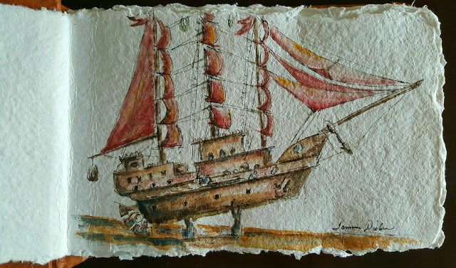 Although the original is part of a handmade watercolor journal, prints and products are available here.
