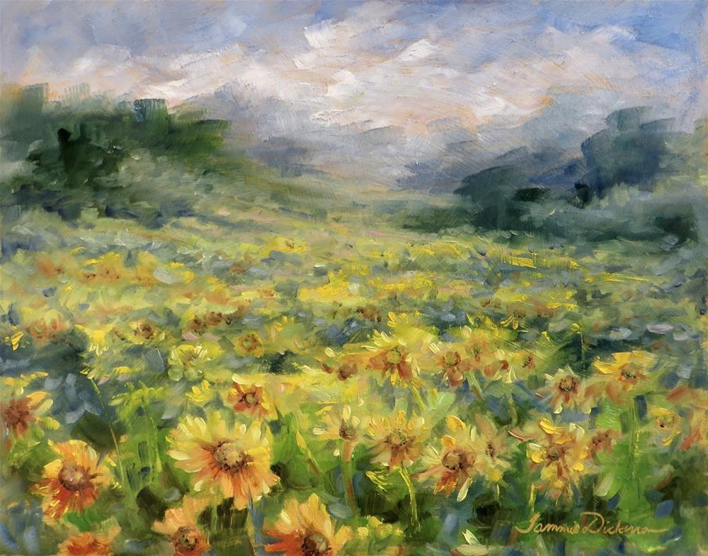 What is more beautiful than fields of sunflowers? Painting them today with brush and knife.