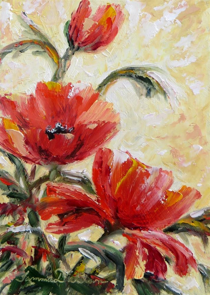 The glorious red poppies are one of my favorites to paint in oils. I've used the palette knife with a heavy hand on this one!