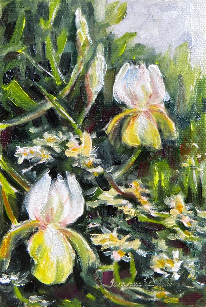 Painting in the garden today, the iris and wild roses perfectly complimented each other!
