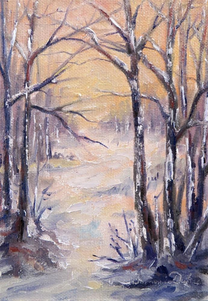 The soft light warms up this cold January day in the woods in this timeless landscape.