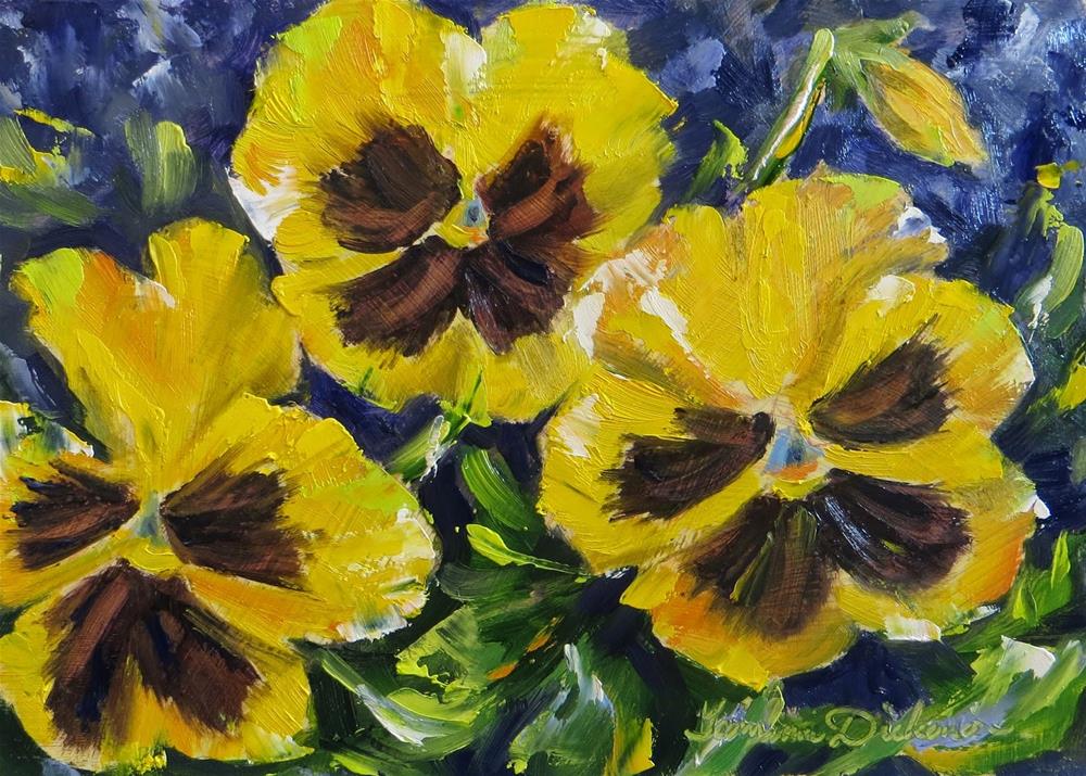 I think these cheerful faces are one of the prettiest pansies ever! With knife and brush, I am painting them in oils today :)