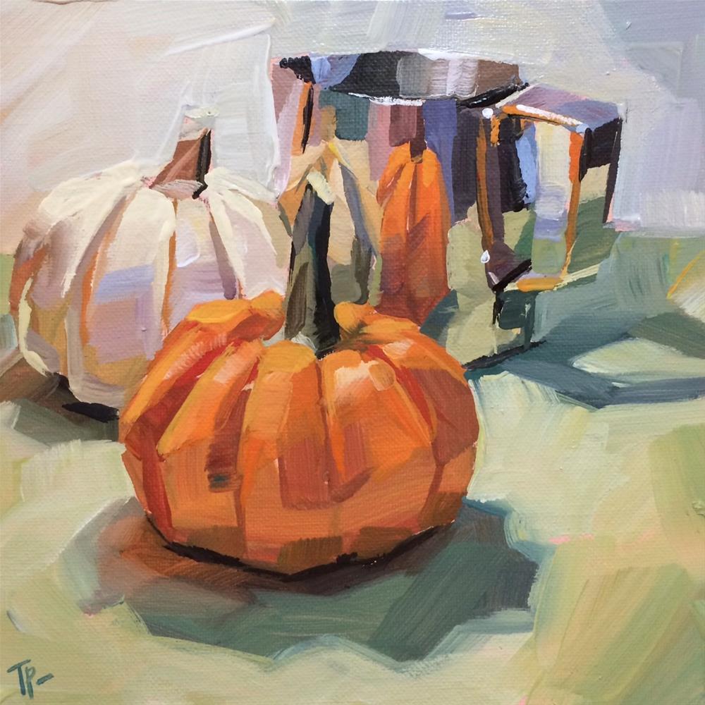 Nap time came today and I poured myself a cup of tea and thought I would just sit and enjoy the rainy weather. But then I thought about the cute little pumpkins my daughter has been collecting and I got all inspired and excited - and when that happens, you obey the call.This was so much fun! I love how soft and glowey it turned out. And that purple that jumps around the canvas. Mmmm.