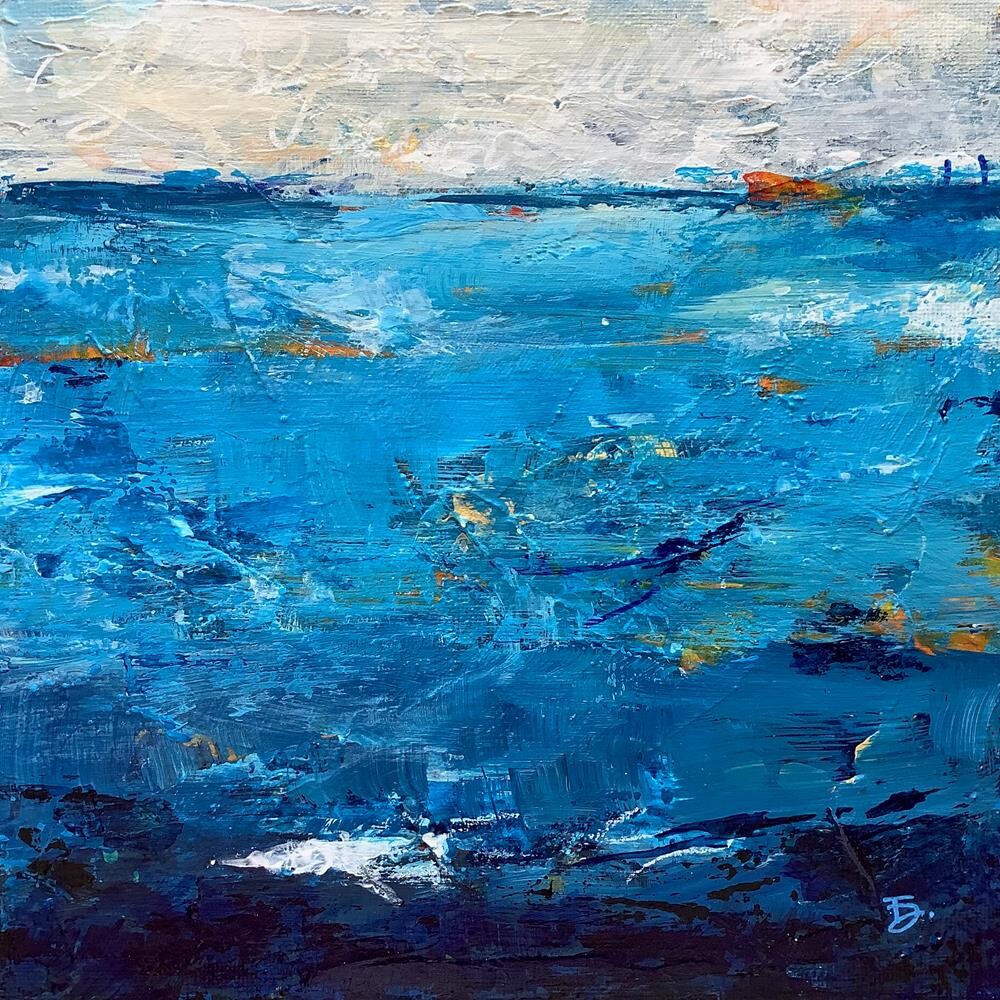 • Artwork is 8x8", measures 14x14" in gold leaf frame • Initialed in the front, signed in the back • Buyer will receive this painting safely packaged and ready to hang. Please allow 5-7 business days to ship.