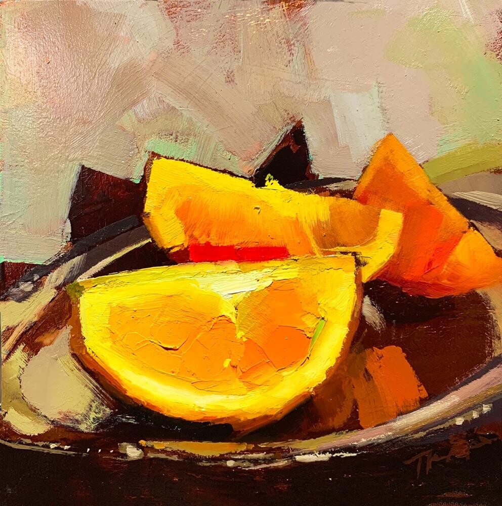 Done in a single session, oranges in sunlight on my kitchen counter. I have a silver tray I put my fruit on, and it adds a sharp element to the otherwise organic subject matter. Done in a single session, oranges in sunlight on my kitchen counter. I have a silver tray I put my fruit on, and it adds a sharp element to the otherwise organic subject matter. |