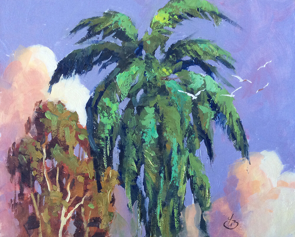 Eucalyptus, palms and gulls circling in a blue sky; a typical day in Southern California. (3788) Eucalyptus, palms and gulls circling in a blue sky; a typical day in Southern California. (3788) |