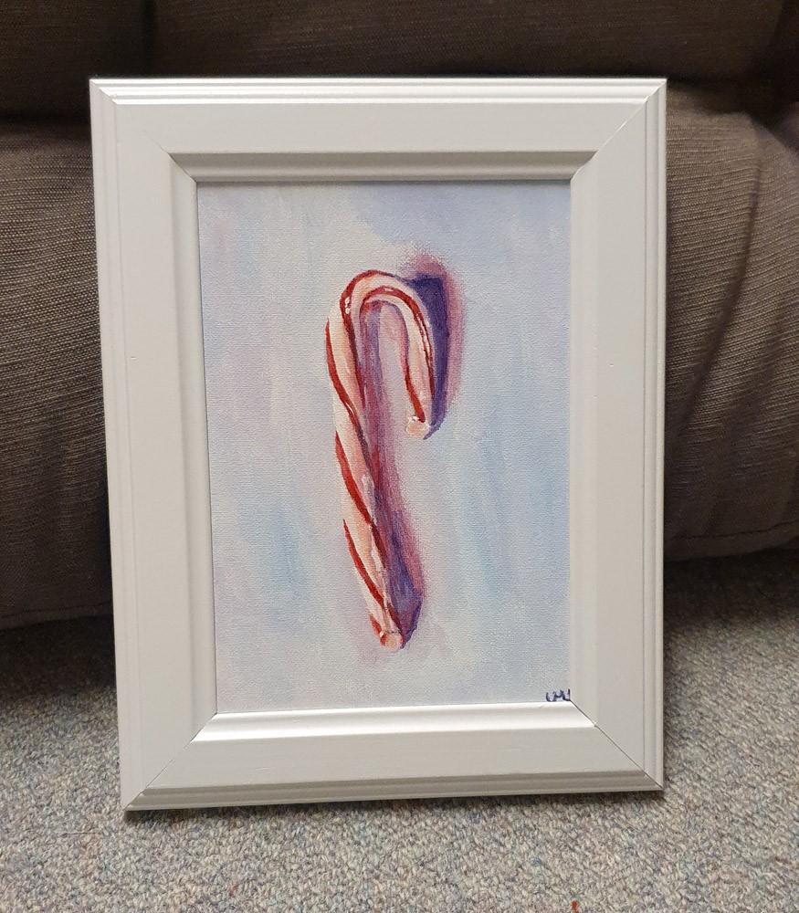 Media: Acrylic oil on canvas panel in white wooden frame (included)
