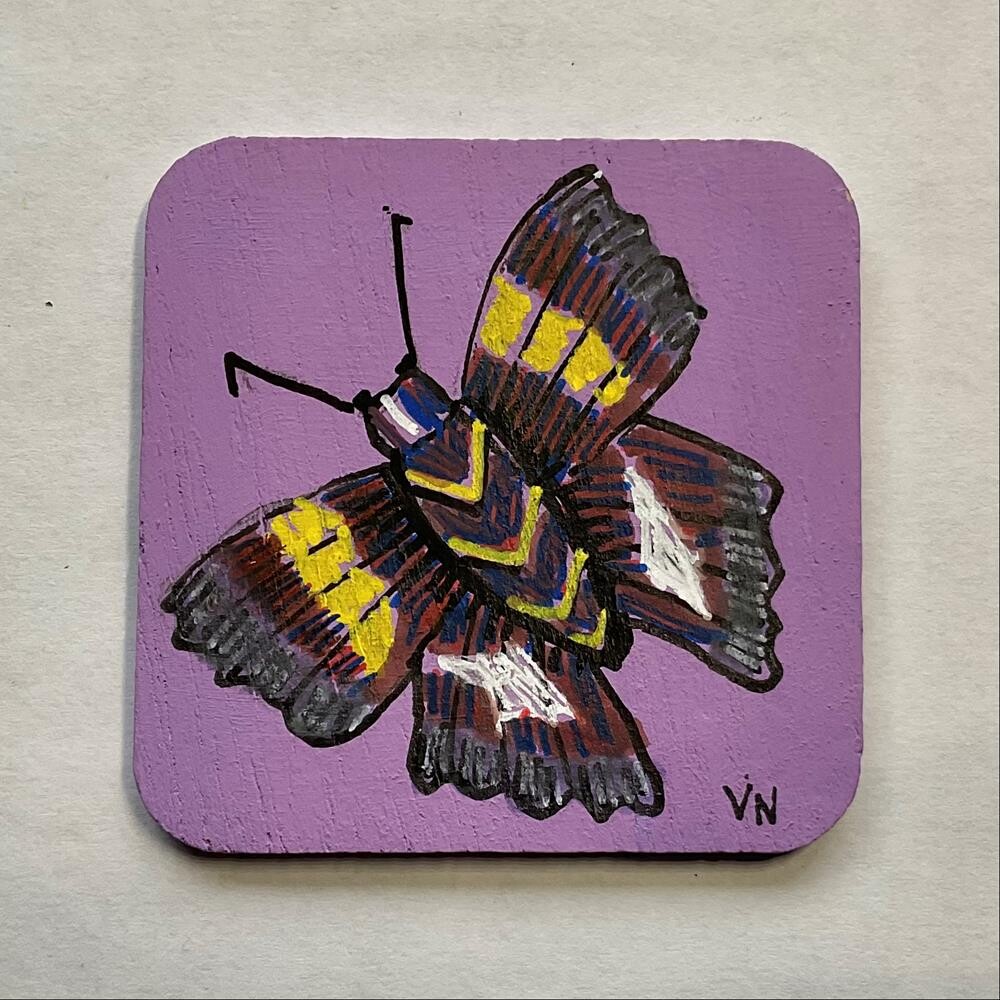 At one point in my shopping travels I picked up a package of 2 inch square wood panels. I decided to paint insects on them, so out came my handy little insect field guide. I added magnetic strips on the back, so they become magnets, clinging to metal surfaces like fridges or file cabinets. Your Arctic Skipper Butterfly magnet will be carefully packaged and sent via Canada Post, regular mail rate (no tracking number).