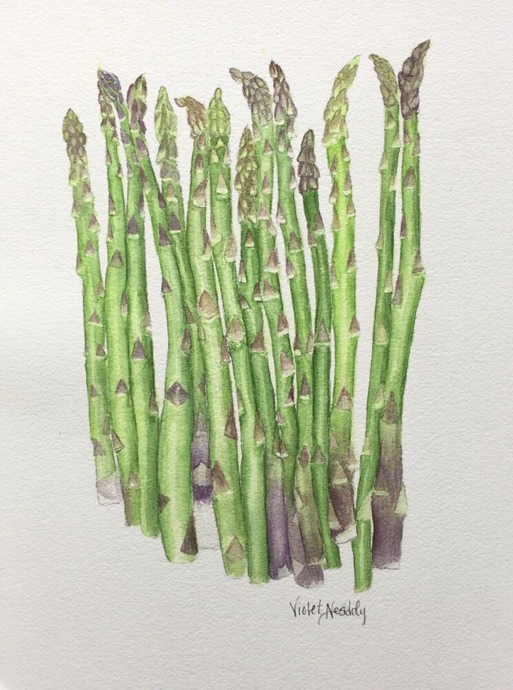 Don't these asparagus spears look like a bunch of actors, lined up to receive their final round or applause? Or perhaps it's a lineup of doom--the metaphorical "curtains."