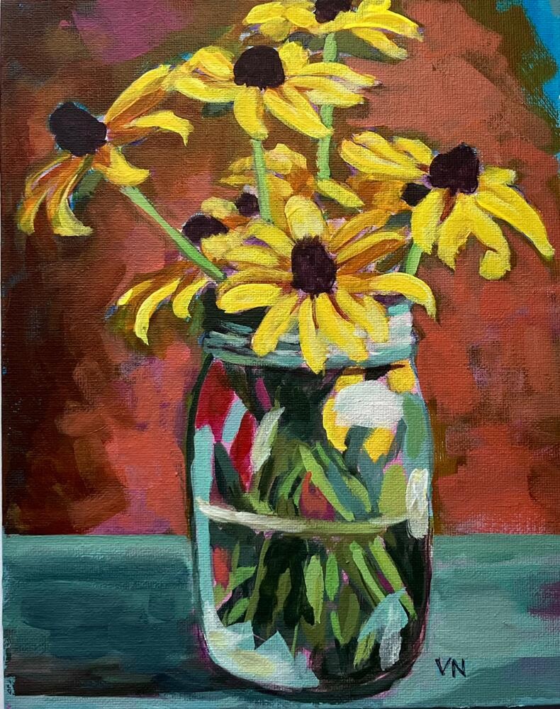 “Black-eyed Susan” was completed in class with Ali Kay. This unframed painting is protected with satin acrylic varnish. It will be carefully packaged and sent with tracking.