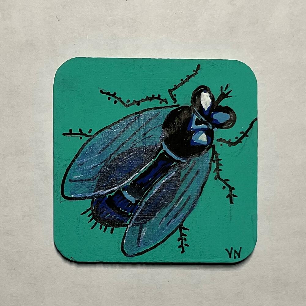 When painting these little panels with insects, I was surprised at how many kinds of flies there are (according to my insect field guide). Your Blue Bottlefly Magnet will be carefully packaged and set via Canada Post regular mail (no tracking number).