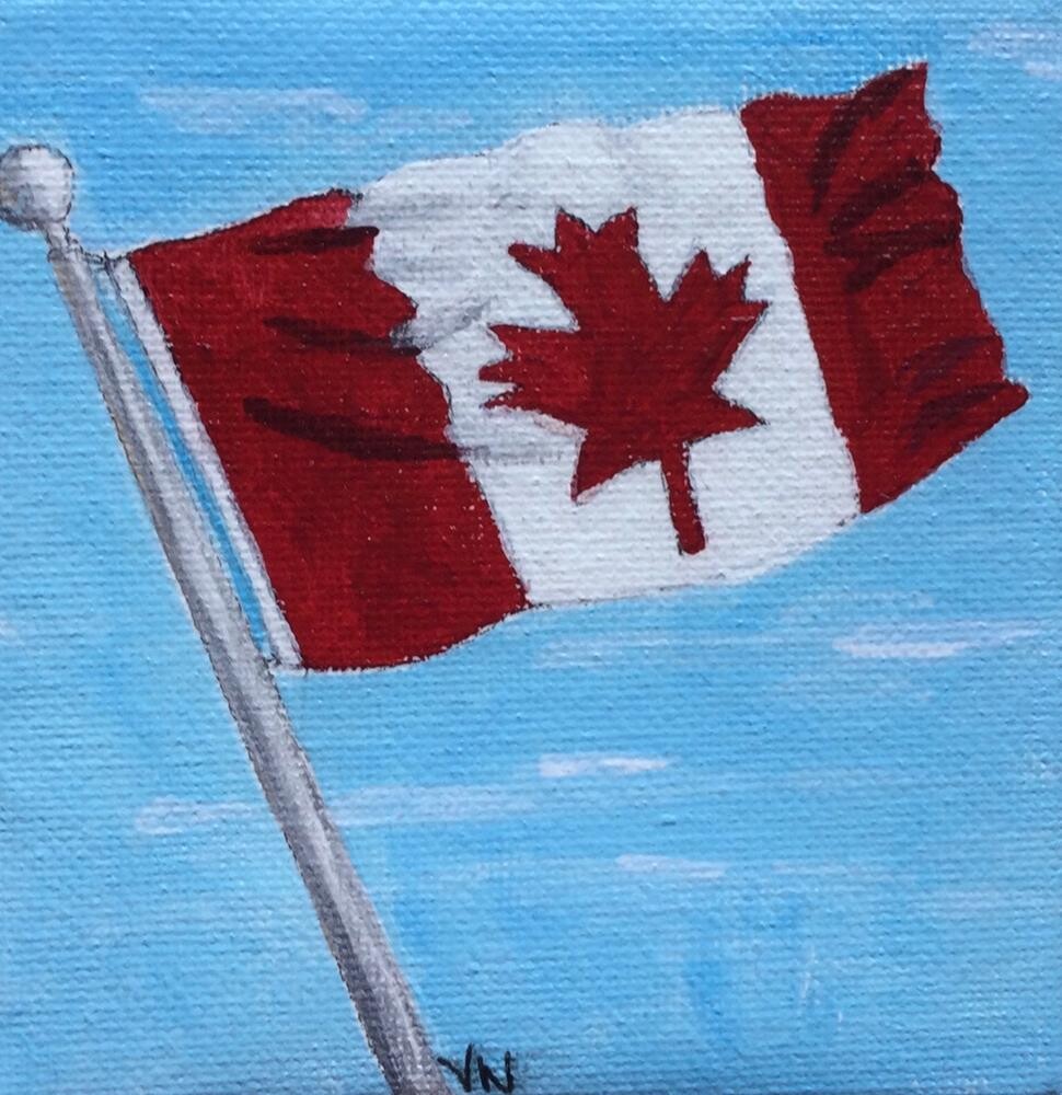 July 1st is Canada Day. The series of miniature Canadian landscapes I’ve been painting wouldn’t be complete without a Canadian flag, the symbol of my home and native land. This 4 x 4 x .5 inch painting on stretched canvas is varnished. It will be carefully packaged and sent, delivered duty paid, with tracking. July 1st is Canada Day. The series of miniature Canadian landscapes I’ve been painting wouldn’t be complete without a Canadian flag, the symbol of my home and native land. This 4 x 4 x .5 inch painting on stretched canvas is varnished. It will be carefully packaged and sent, delivered duty paid, with tracking. |