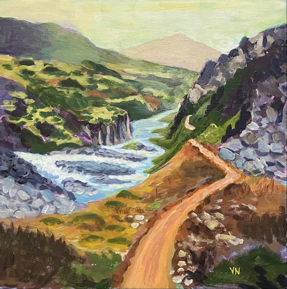 The Chilkoot Trail was one of the Yukon routes prospectors took to look for gold during the gold rush. "Chilkoot Trail" was painted in class with Brian Buckrell as part of the Paint Canada series from Acrylic University. Photo by Cathy Buckrell. Your unframed painting will be carefully packaged and sent with tracking.