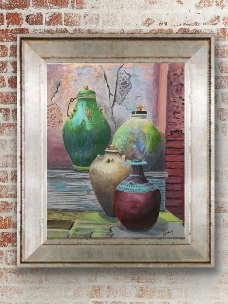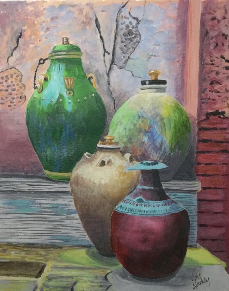When I see a collection of pots or jugs, the Bible verse, “We have this treasure in jars of clay,” comes to mind (2 Corinthians 4:7). It reminds me that what's on the inside is far more important than outer appearance or apparent value. Thanks to Denise McQuillan, whose photograph inspired this painting. “Jars of Clay” is painted with acrylic paint on watercolor paper. It is unframed and will be carefully packaged and sent with tracking When I see a collection of pots or jugs, the Bible verse, “We have this treasure in jars of clay,” comes to mind (2 Corinthians 4:7). It reminds me that what's on the inside is far more important than outer appearance or apparent value. Thanks to Denise McQuillan, whose photograph inspired this painting. “Jars of Clay” is painted with acrylic paint on watercolor paper. It is unframed and will be carefully packaged and sent with tracking |