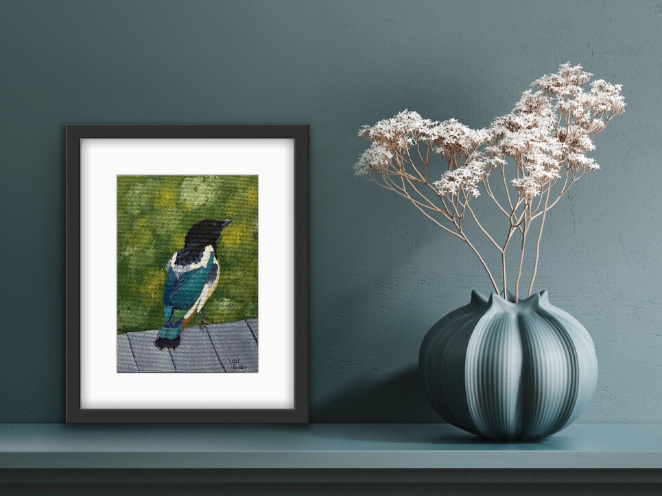 I managed to catch this magpie’s iridescent black feathers in a teal moment on the reference photo for this painting. These usually black-and-white birds are noisy, scrappy, and beautiful! I managed to catch this magpie’s iridescent black feathers in a teal moment on the reference photo for this painting. These usually black-and-white birds are noisy, scrappy, and beautiful! |