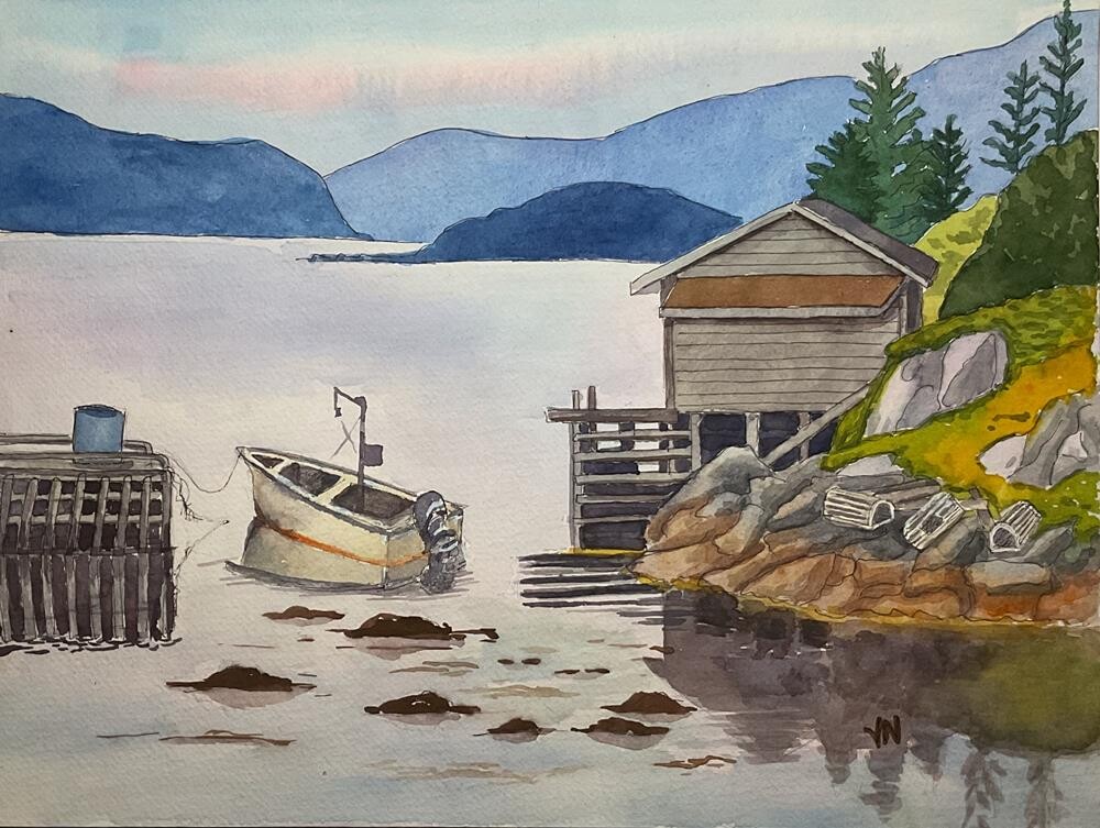 Another version of the Newfoundland shoreline, this time done in line and wash (pen and watercolour). Photo: Brian & Cathy Buckrell. Your unframed painting will be carefully packaged and sent delivered duty paid with tracking. Another version of the Newfoundland shoreline, this time done in line and wash (pen and watercolour). Photo: Brian & Cathy Buckrell. Your unframed painting will be carefully packaged and sent delivered duty paid with tracking. |