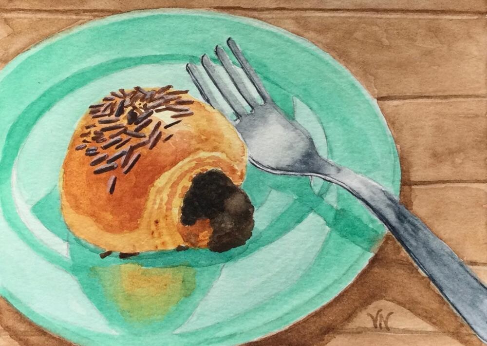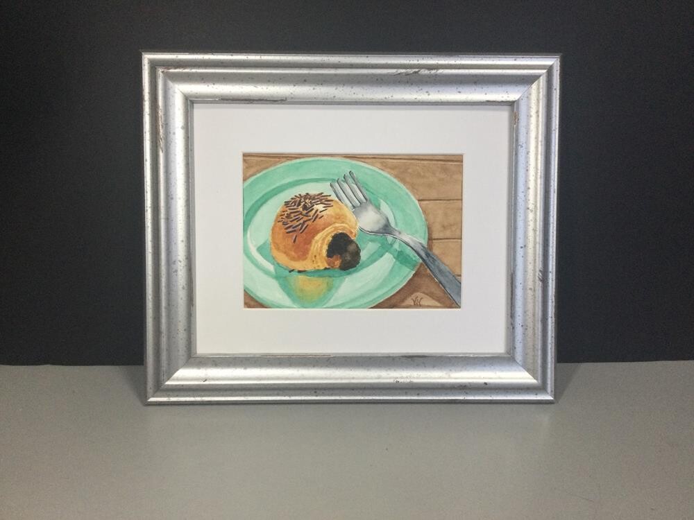 This painting of chocolate bread (Pain au chocolat) is making me hungry! It is an original painting, painted with watercolors on card stock. The 5x7 inch size makes this original card painting easy to frame. The card comes with an envelope and is protected by a clear cellophane sleeve.The card & envelope ship via Canada Post, regular mall rate (no tracking). A big thanks to photographer Dennis Pfeil Artworks for use of food photographs as references. This painting of chocolate bread (Pain au chocolat) is making me hungry! It is an original painting, painted with watercolors on card stock. The 5x7 inch size makes this original card painting easy to frame. The card comes with an envelope and is protected by a clear cellophane sleeve.The card & envelope ship via Canada Post, regular mall rate (no tracking). A big thanks to photographer Dennis Pfeil Artworks for use of food photographs as references. |