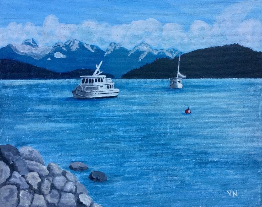 A visit to Gibsons on the Sunshine Coast of B.C. will treat you to scenes like this one. The sparkling white of the boat and snow-capped mountains will bring a freshness to any room in which this painting finds a home. A visit to Gibsons on the Sunshine Coast of B.C. will treat you to scenes like this one. The sparkling white of the boat and snow-capped mountains will bring a freshness to any room in which this painting finds a home. |