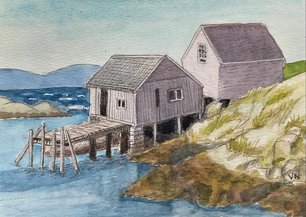 0ur vacation to Canada’s east coast in 2018 was the inspiration for this little painting. We so enjoyed the picturesque village of Peggy’s Cove, Nova Scotia. This unframed pen and watercolor painting is on 140 lb. watercolor paper. It will be carefully packaged and sent with tracking.