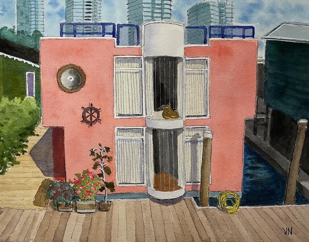 One of the photos I took years ago of the houseboats along False Creek in Vancouver was the inspiration for this line and wash (pen and watercolour) painting. Your unframed painting will be carefully packaged and sent DDP (delivered duty paid) with tracking. One of the photos I took years ago of the houseboats along False Creek in Vancouver was the inspiration for this line and wash (pen and watercolour) painting. Your unframed painting will be carefully packaged and sent DDP (delivered duty paid) with tracking. |