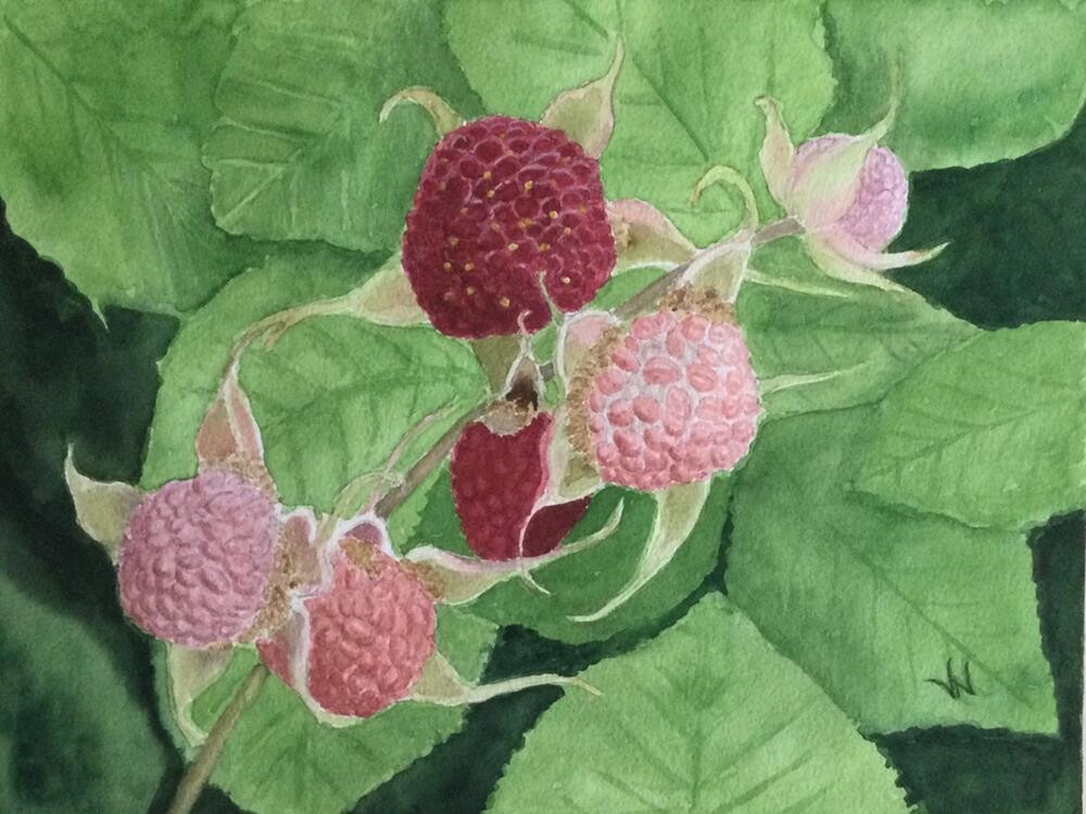 One of the things I love about summer is finding wild berries ripening on the bushes and shrubs that line our woodland pathways. “Thimbleberries” (another “Eat Wild” painting) celebrates summer in B.C.’s Lower Mainland and the thrill of finding a branch loaded with ripe and ripening Redcaps (as they're also called). “Thimbleberries” is a 9” x 12” original watercolor painting on 140 lb. 100% cotton cold press watercolor paper. Painting is not matted and comes unframed. It is initialed on the front, signed on the back. Painting will be mailed protected by a clear cellophane sleeve, sandwiched between layers of foam board and shipped in a bubble mailer. Shipping is via Canada Post with a tracking number.