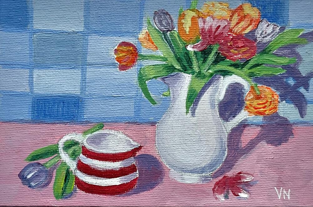 This little painting was inspired by another colourful photo in Debbie Rose Miller’s #mugsandmoreart series. The painting is varnished and has a plastic hanger installed in the back for instant hanging. It is also the perfect size for most frames with a 4x6” opening. Your unframed photo will be carefully packaged and sent with tracking.