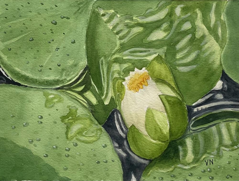 This water lily bud is about to open. Your unframed watercolour painting will be carefully packaged and sent with tracking.