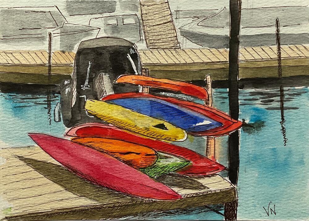 A walk along the waterfront of Gibsons BC inspired this little painting of colourful watercraft. A walk along the waterfront of Gibsons BC inspired this little painting of colourful watercraft. |