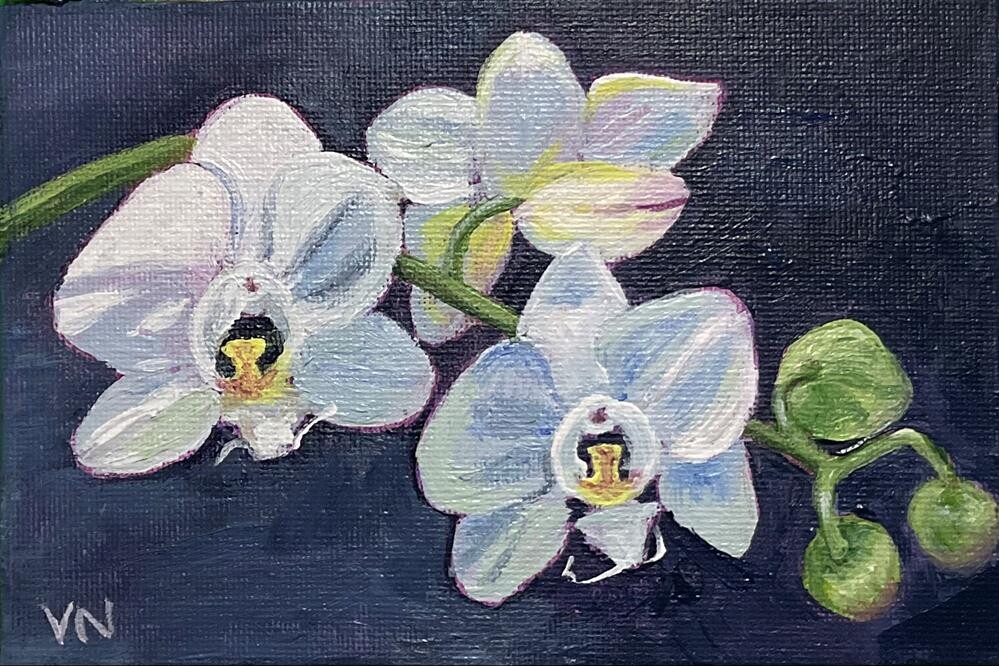 My orchid burst into bloom just before Christmas. It cheers the place up, now that the Christmas decorations are down. Your painting will be carefully packaged and sent with tracking.