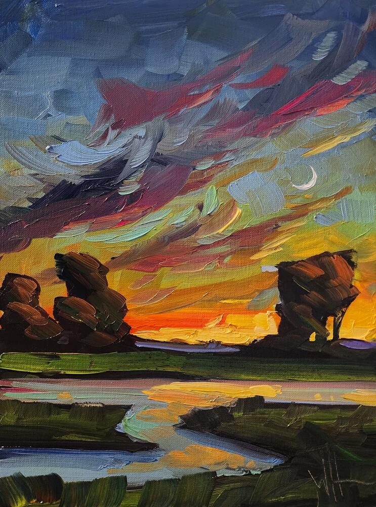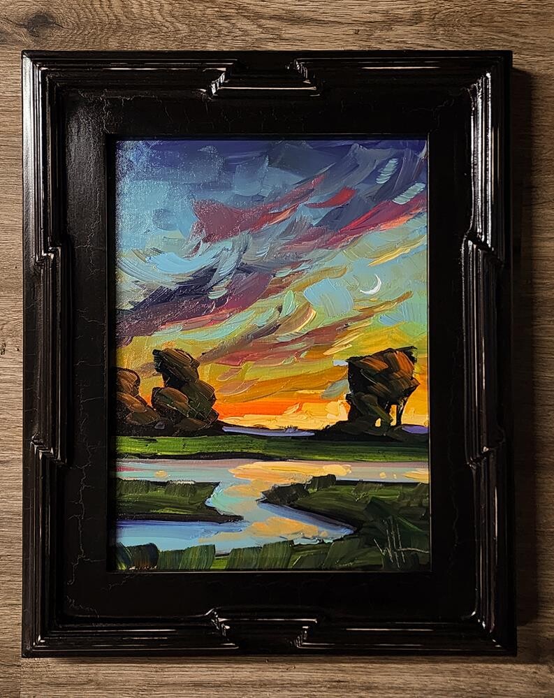 This new 16x12 inches oil painting on canvas panel comes framed as shown and will be available for shipping within three weeks of the date of posting. Typically the paintings are offered "on sale" their first week or so of availability. Once they've cured and seasoned a bit they begin to grow on me. That precipitates a return to my normal per-square-inch of canvas pricing. I know, it's the reverse of most selling practices. Hawkins original paintings -- doing our best to help forlorn drab walls and interiors the world over since 1995. Ask about frame options, commissions, and international shipping -- all are welcome. This new 16x12 inches oil painting on canvas panel comes framed as shown and will be available for shipping within three weeks of the date of posting. Typically the paintings are offered "on sale" their first week or so of availability. Once they've cured and seasoned a bit they begin to grow on me. That precipitates a return to my normal per-square-inch of canvas pricing. I know, it's the reverse of most selling practices. Hawkins original paintings -- doing our best to help forlorn drab walls and interiors the world over since 1995. Ask about frame options, commissions, and international shipping -- all are welcome. |