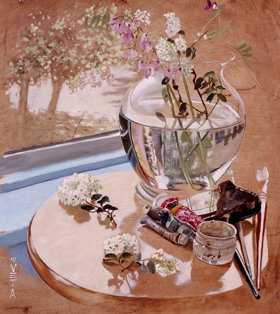 "Spring" was painted as part of the Studio Still Life series. This oil on Masonite painting is the first in the four piece series of still life realism. I painted this piece as the first light and warmth of spring time was coming into my artist studio.
