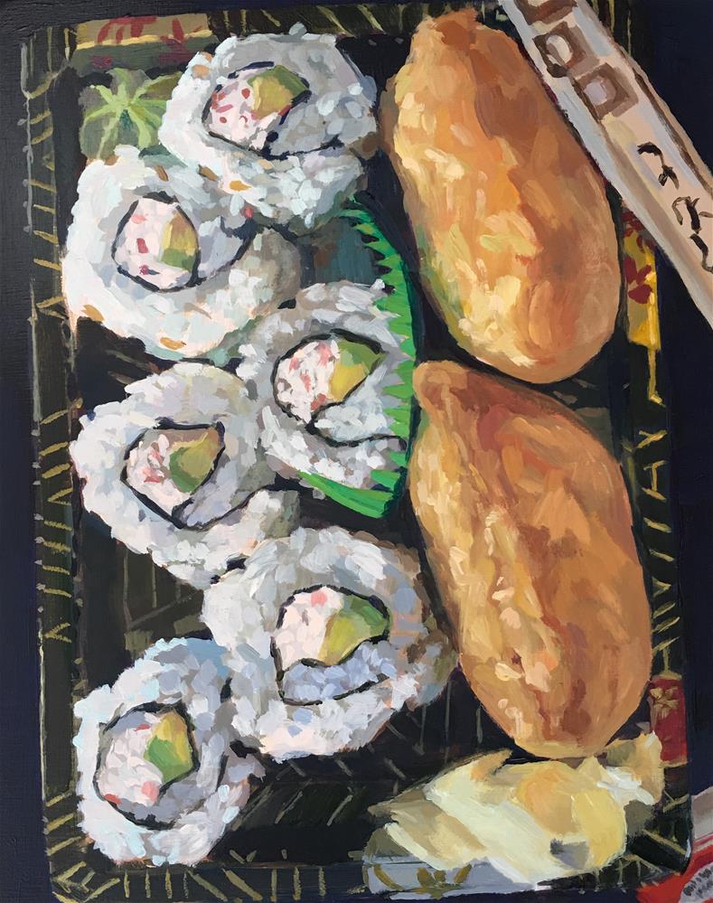 I was attracted to the presentation of this sushi bento. Even the plastic tray is ornate. This is being shown at Studio Gallery in San Francisco starting 8/31/17 for the "Delicious" show.