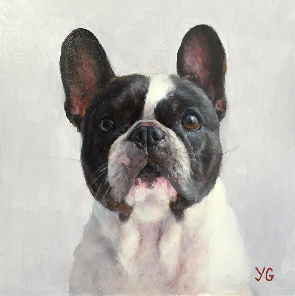 Portrait is done on 6*6in gessoboard using professional grade oil paints. This painting is sold but if you would like to commission portrait of your own dog or your friend's pet, please feel free to contact me. You can see more works on my website: www.yanagolikova.com |