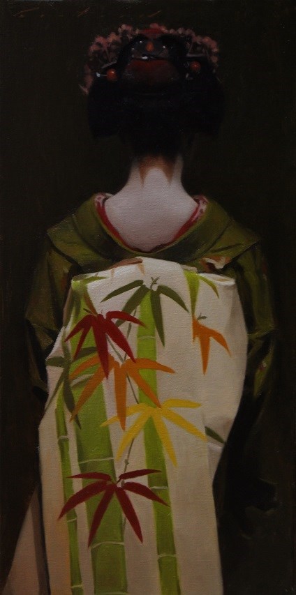 This is a painting of Maiko Tomitae, an apprentice geisha from Kyoto, viewed from behind. Maiko wear a long obi sash called "darari obi". All of my paintings are signed, come with a certificate of authenticity and is securely shipped using Japan Post EMS with tracking.